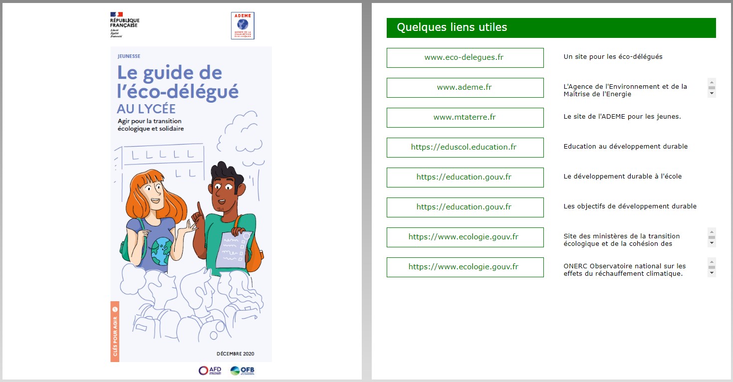 Dans les classes de collège et de lycée, les éco-délégués de classe sont les premiers acteurs de la question écologique en milieu scolaire, ces éco-délégués jouent un rôle essentiel de sensibilisation et de mobilisation pour contribuer à faire des collèges et lycées des espaces plus favorables à la biodiversité et davantage engagés dans l’atténuation et l’adaptation au changement climatique.