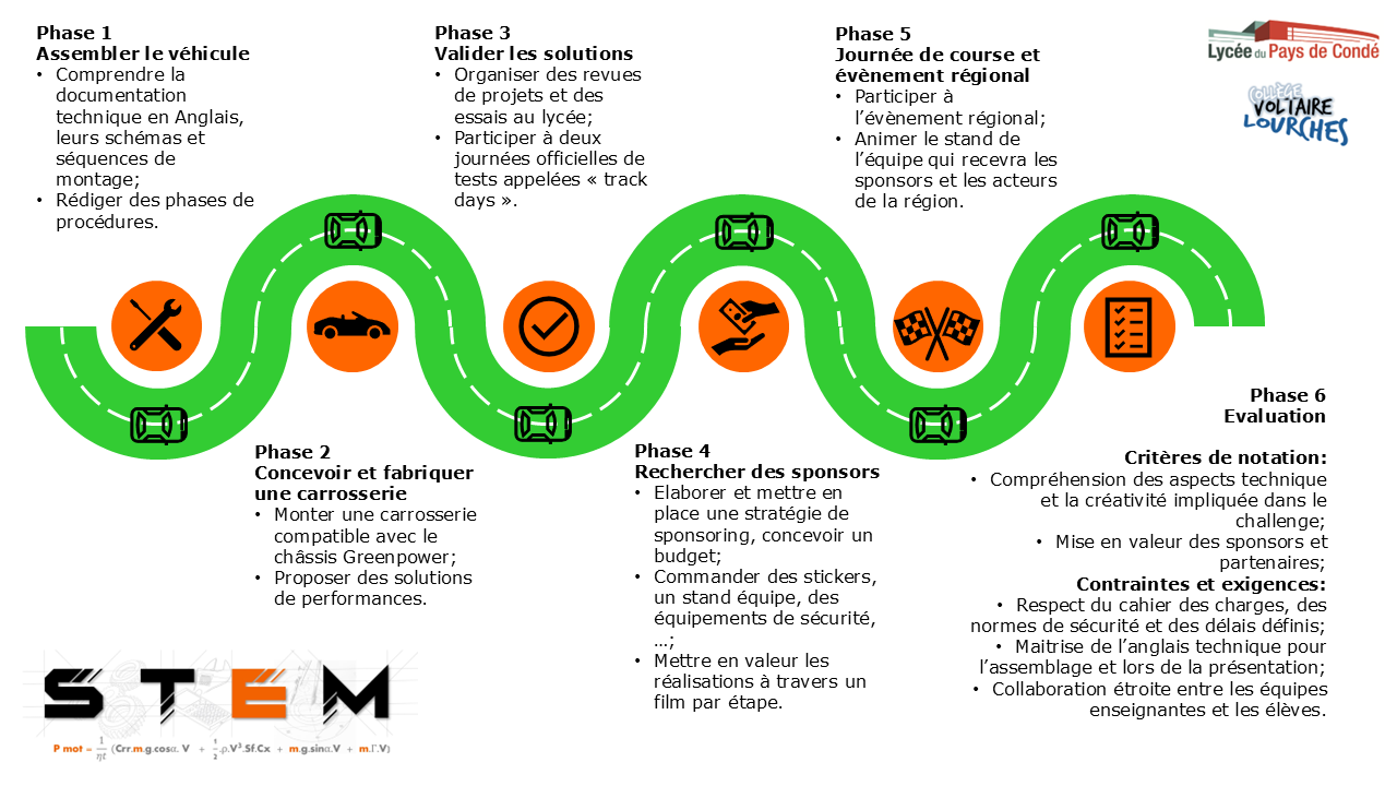 Assemblé par les élèves et les enseignants il devra être reconçu par les élèves de Lourches et de Condé sur l'Escaut, aidés de leurs professeurs, pour être le plus performant possible lors des courses.